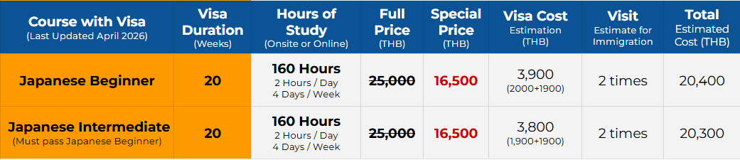 Japan Courses with No ED visa Support