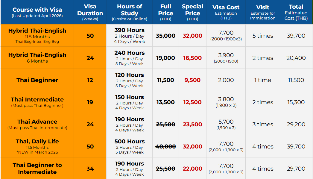 Thai Courses with ED visa Support