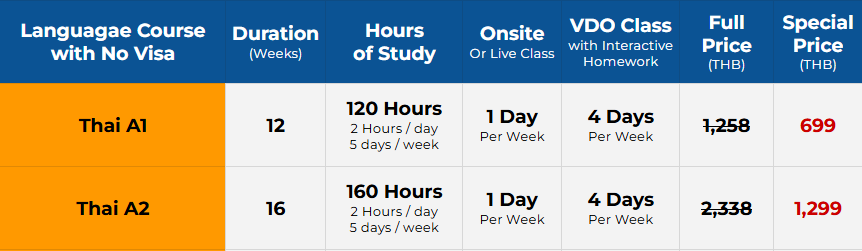 Thai Courses with No ED visa Support